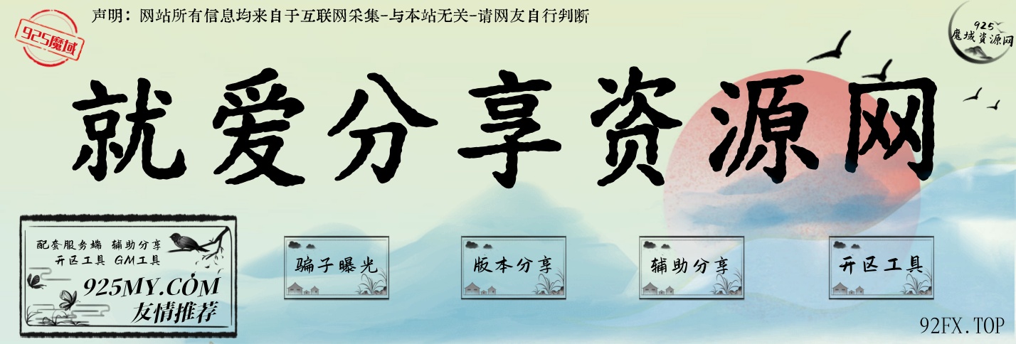 92游戏资源网,游戏版本,游戏服务端,魔域版本库,魔域私服发布网,各种服务端,辅助外挂,GM工具,游戏版本,端游,手游,服务器租赁,一条龙开区,游戏搭建、找sf就来 925my.com
